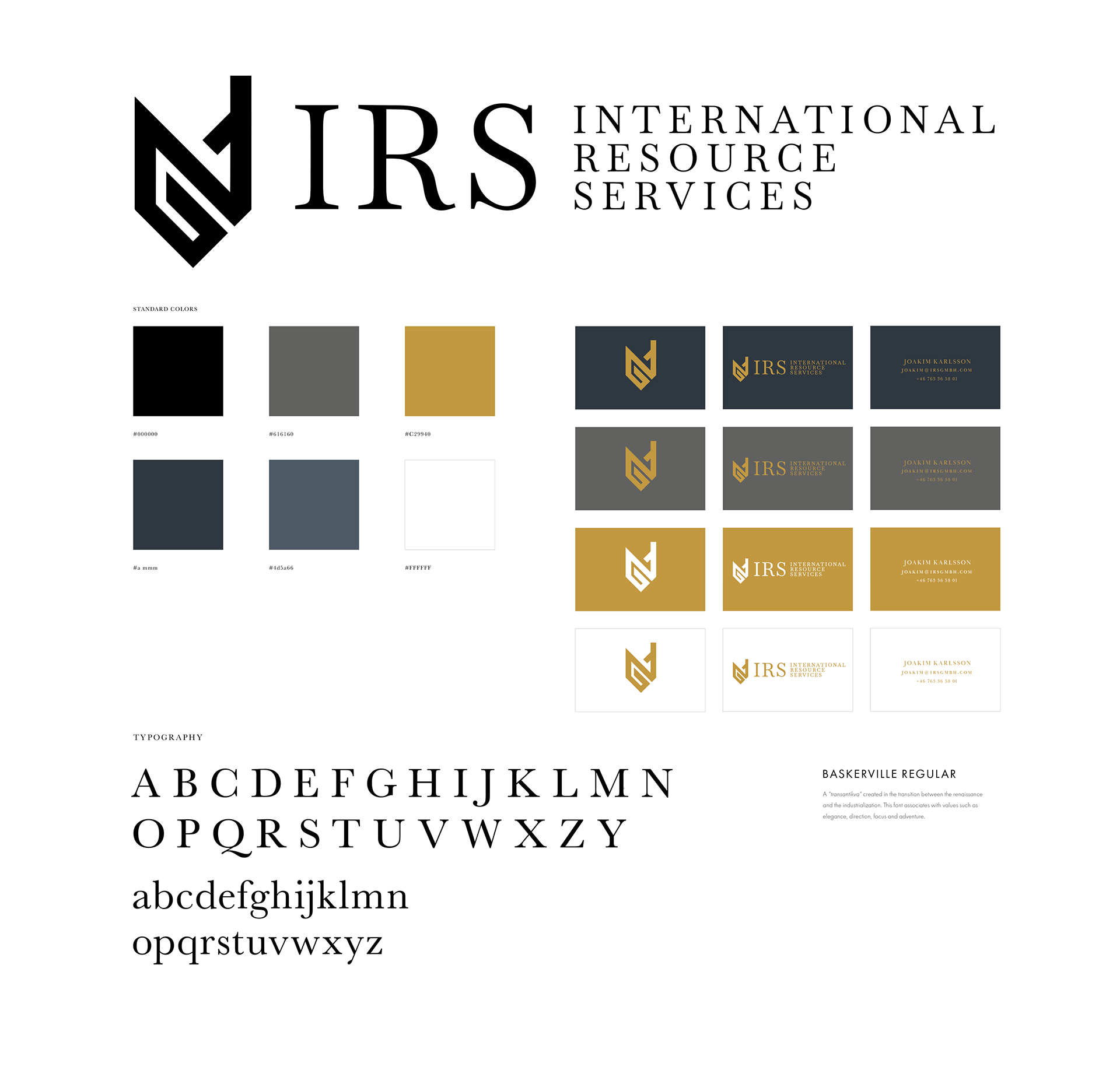Decision making in today’s world requires intelligece, timing and resources. IRS makes sure you have the information needed and proper understanding of the context. Below you can see the landing hero section for International Resource Services website, along with their branding profile.